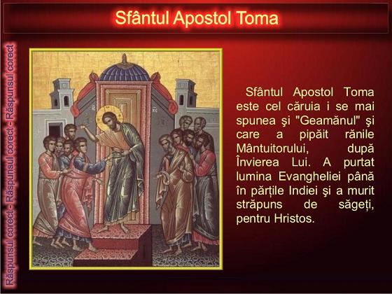 Ghicitoarea G7 Nu a fost necredincios Că a înviat Hristos, Ci puţin s-a îndoit, Până ce l-a pipăit. |