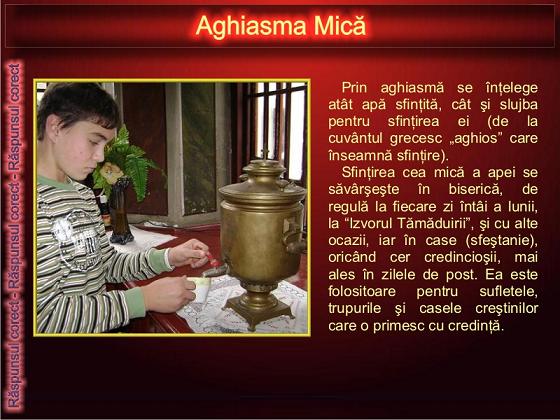 Ghicitoarea H3 Apă celor demni menită, La sfeştanie sfinţită. Zilnic o putem lua, Dar întâi anafora. |