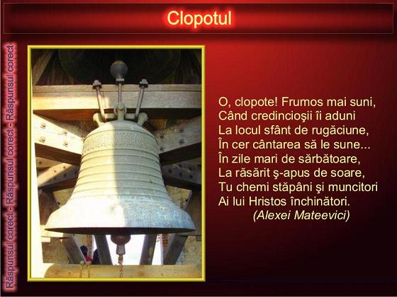 Ghicitoarea I7 O perdea care se plimbă Şi acoperă la slujbă Uşile împărăteşti. Ce răspuns îmi dăruieşti ? |